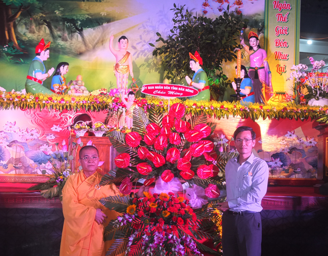Để chúc mừng Đại lễ Phật đản PL.2562, tại buổi lễ các cấp Chính quyền đã tặng đến BTS GHPGVN tỉnh nhiều lẵng hoa tươi đầy ý nghĩa.